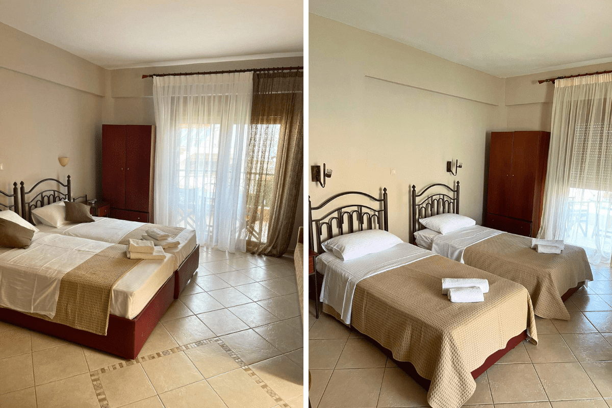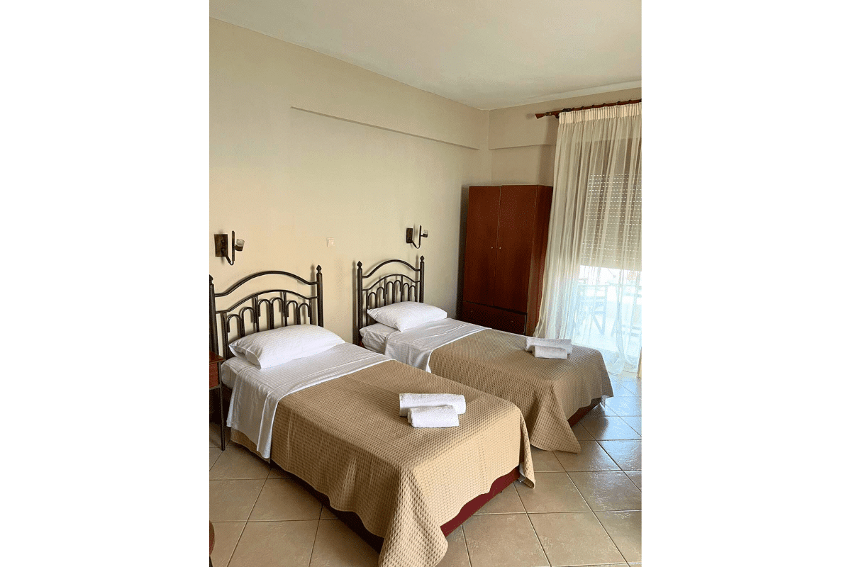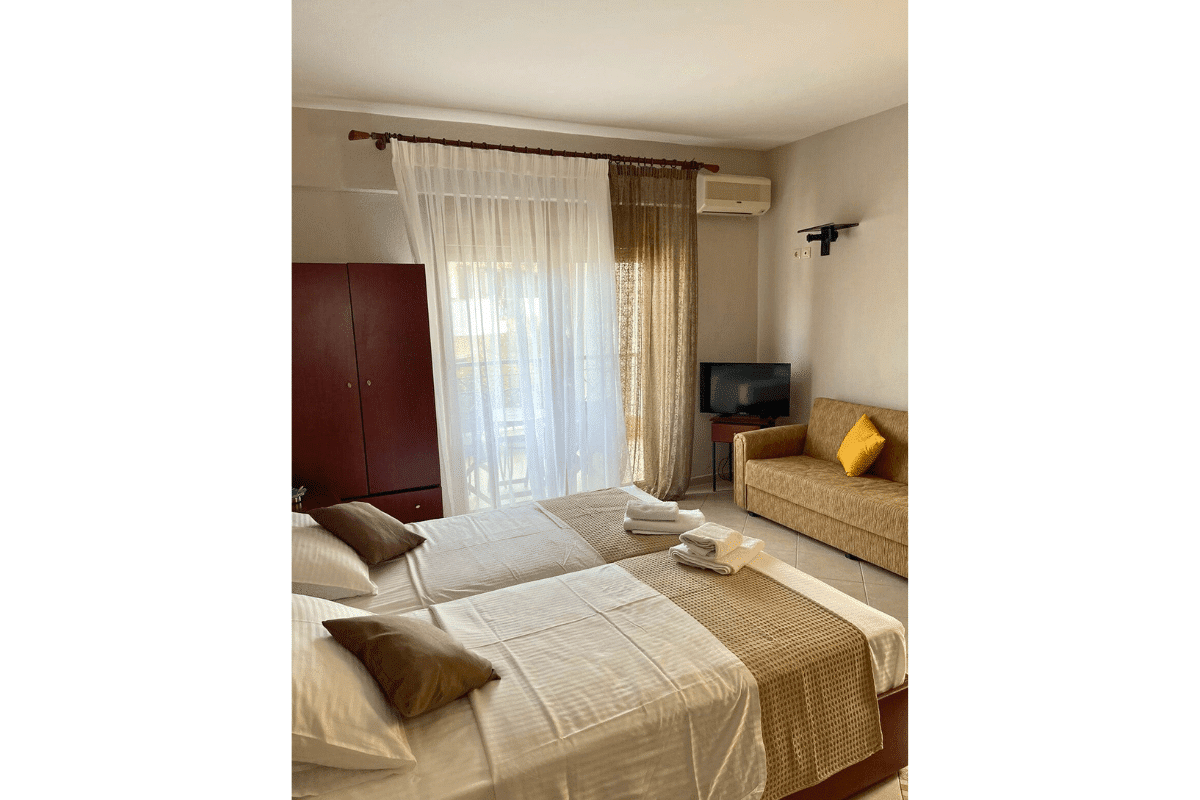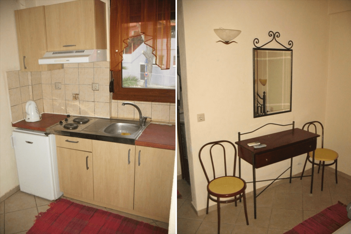 Svaka smeštajna jedinica ima standardno opremljenu kuhinju sa svim potrebnim elementima, kupatilo, TV i klima uređaj.Korišćenje klima uređaja se doplaćuje 5€ dvevno. Zamena posteljine ce biti na pola smene.